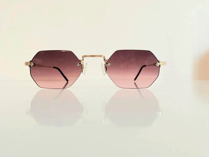 Lunette de soleil mixte hexagonale marron et dorée verres dégradés UV protection catégorie 2 - photo numéro 1