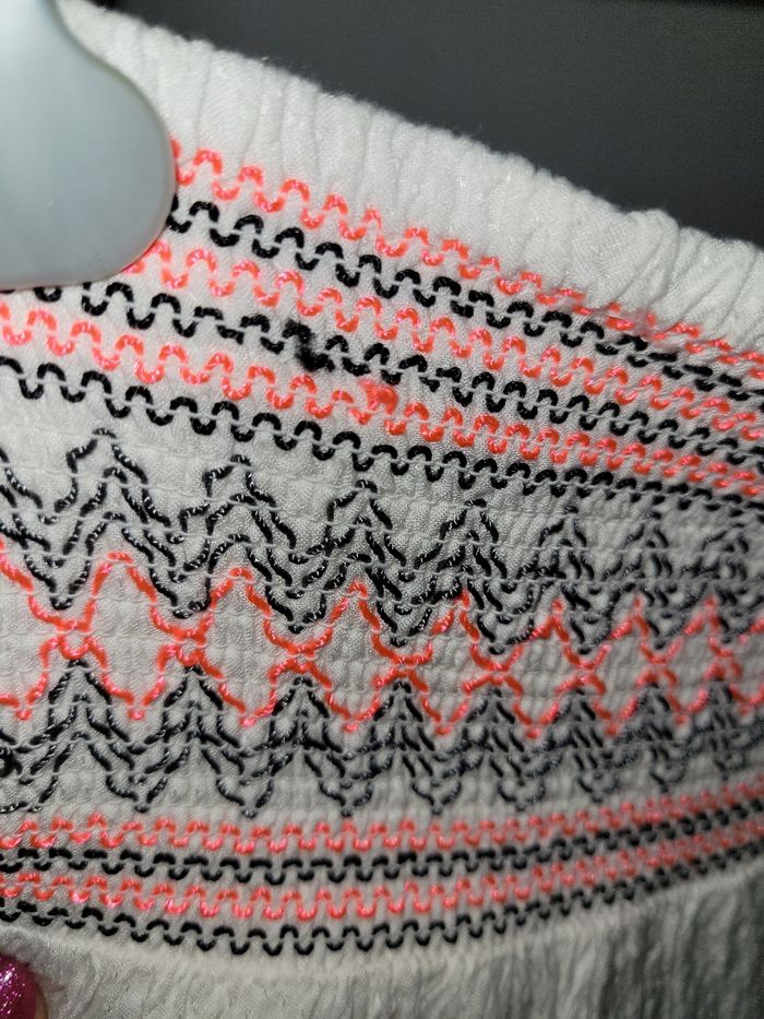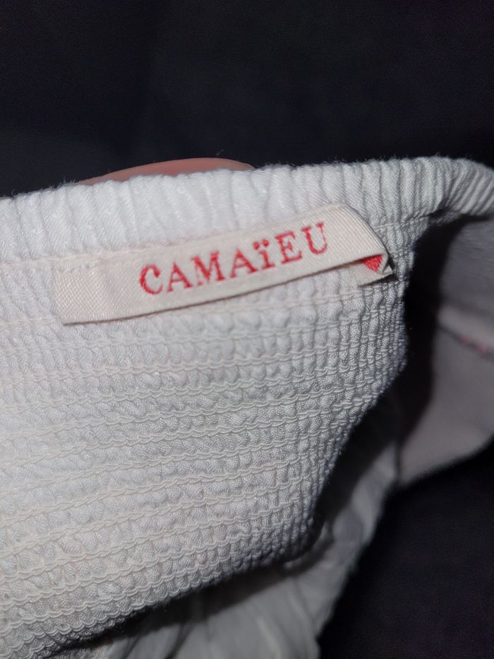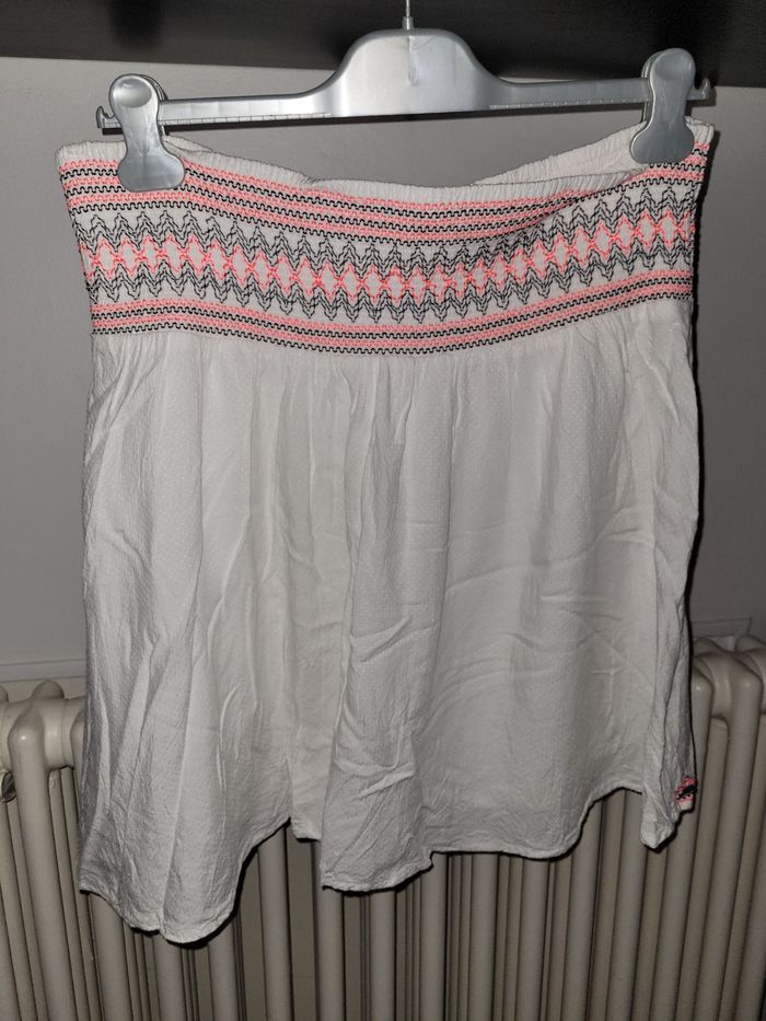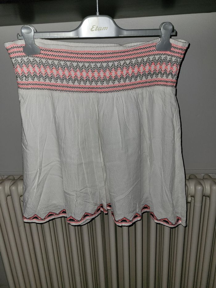Jupe blanche d'été Tissu en relief Déco broderie sur la taille élastiquée Deco broderie sur le bas à l'avant Marque Camaïeu Taille 40 Dimensions à plat : - taille : 40cm - longueur totale : 48cm 1 petit fil tiré à la taille, visible sur la dernière photo Réductions activées sur les lots ✅️ ↘️ 🤑 #taille40sofi1804 #jupesofi1804