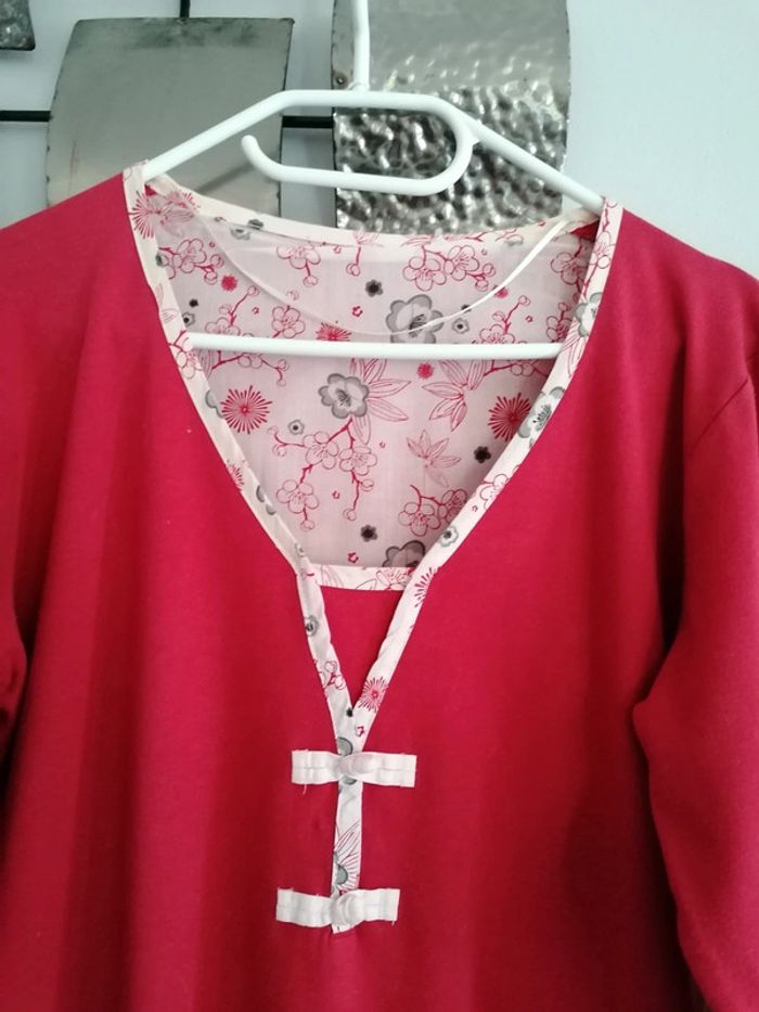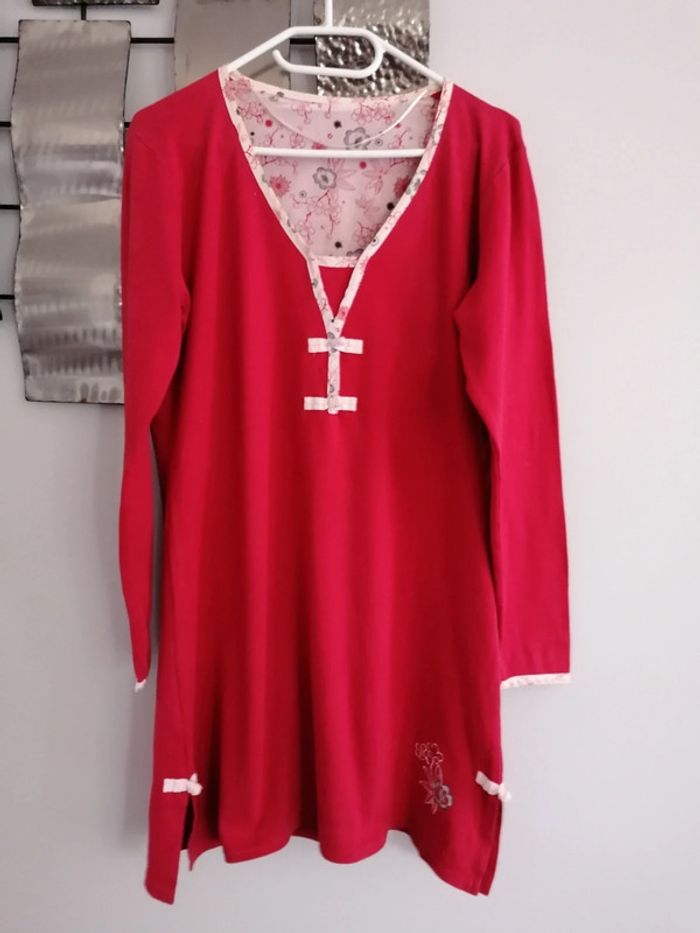 Chemise de nuit rouge avec des manches longues Aisselle à aisselle 53 cm environ Coton