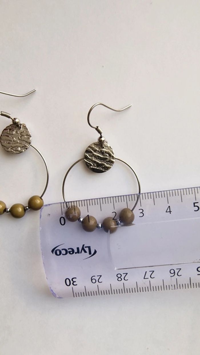 Boucle d'oreille créole perles kaki - photo numéro 2