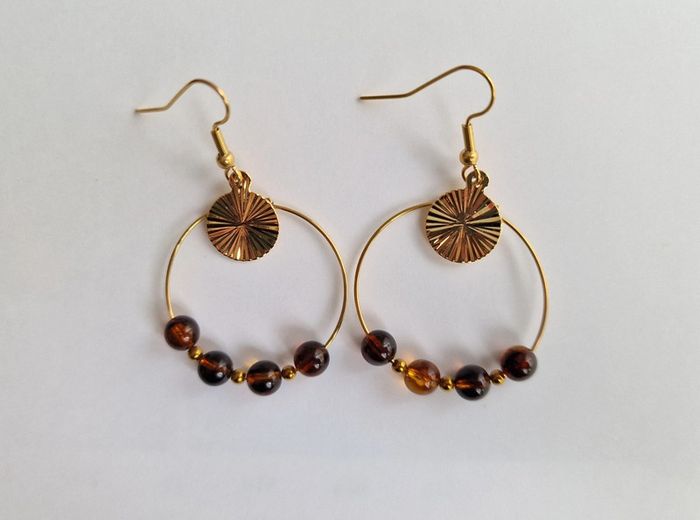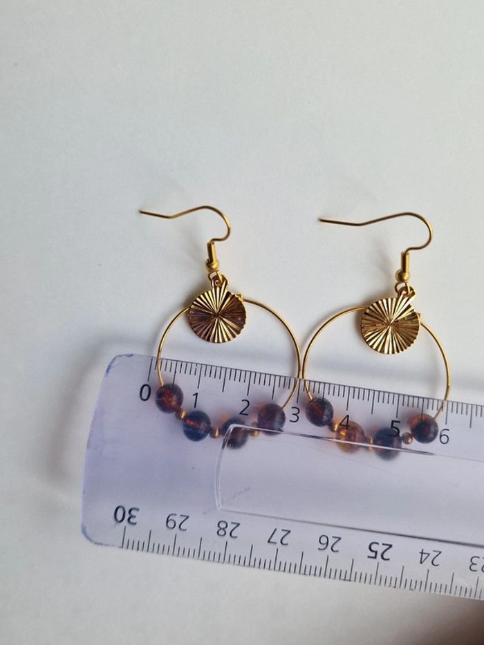 Boucle d'oreille créole en acier inoxydable doré et perles marron Marque Crystalia Perles comme neuf Diamètre 3cm #perles&co #créole #creolemarron #fetedesmeres #acierinoxydabledoré