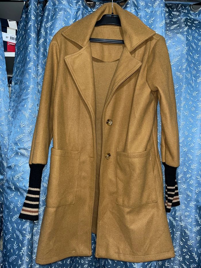 Magnifique veste longue taille 14 ans marron manche laine très joli neuf