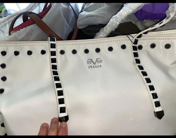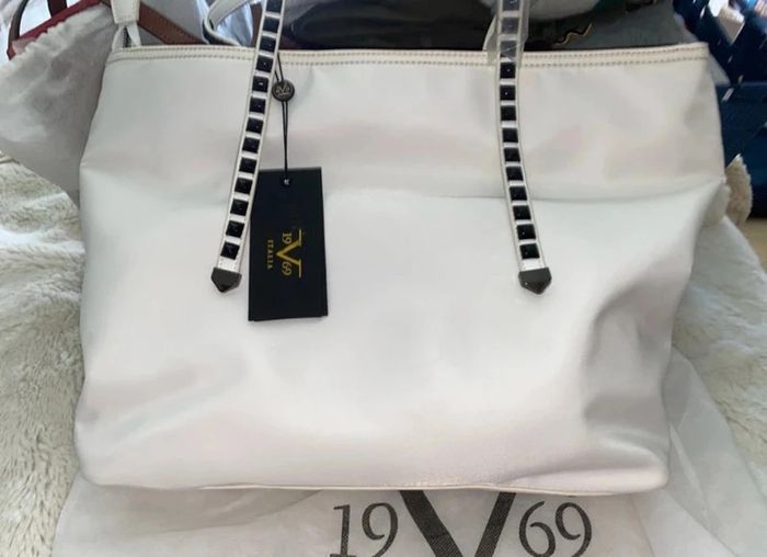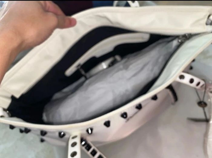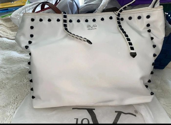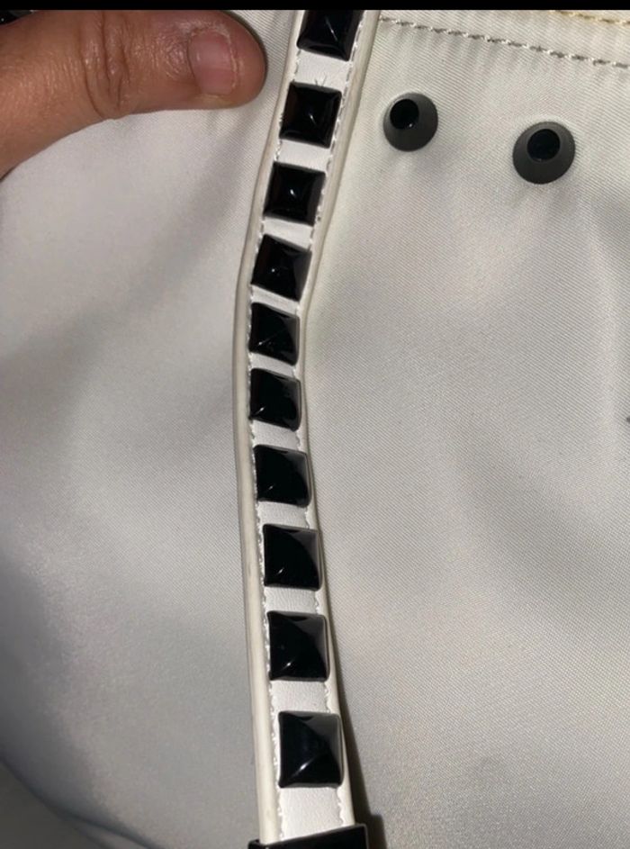Magnifique sac à main avec lanière tres grand blanc cassé neuve clouté en cuir prix 310 eur il es canonnn