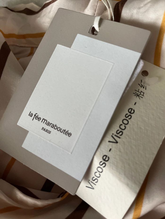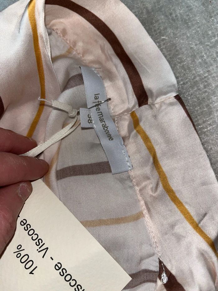 Magnifique chemise sans manche la fée maraboutée Paris marron crème orange 100% viscose taille 38