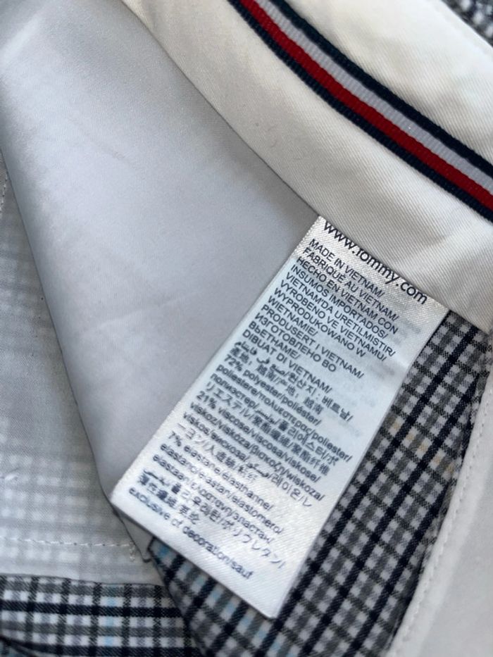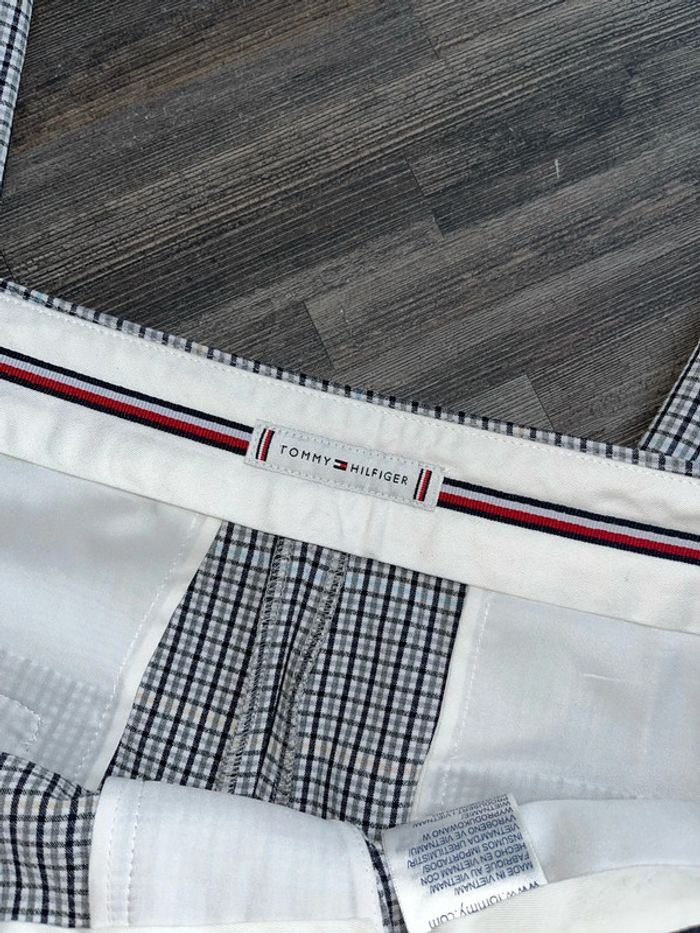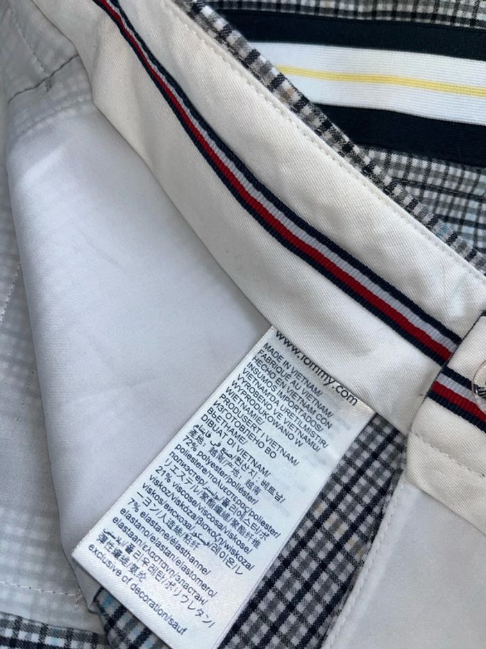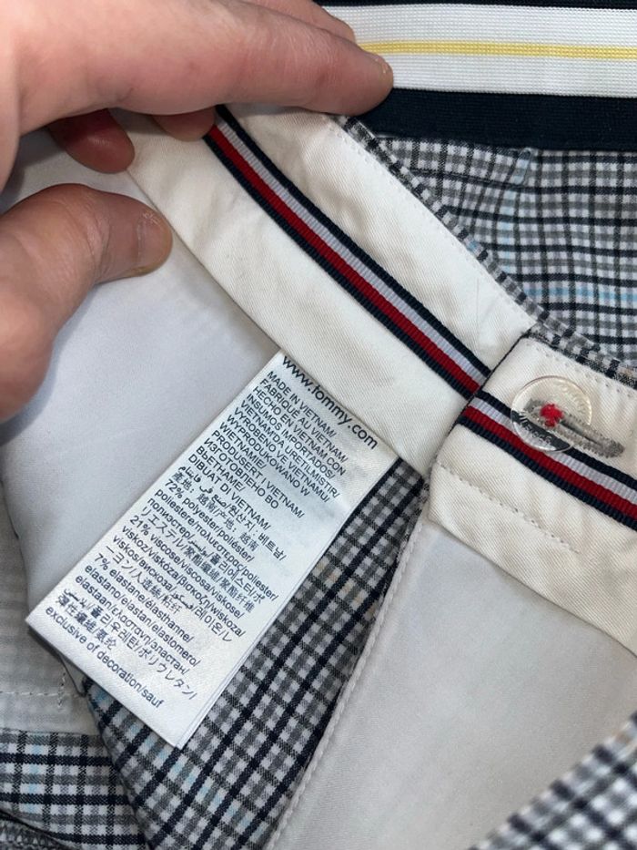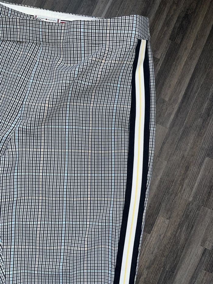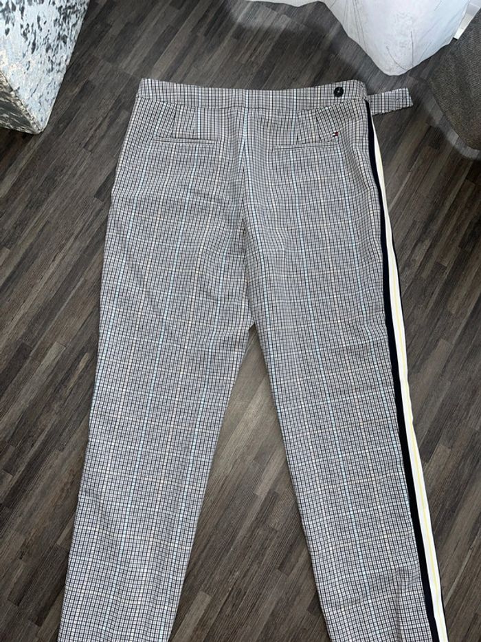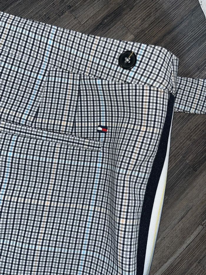 Magnifique pantalon classique à carreaux tommy hifilger bleu foncé bandé blanche bleu, blanc et jaune avec petit poche derrière taille 42 mise 1 fois comme neuve il est super canon payé plus de 200 eur