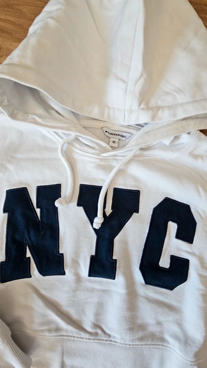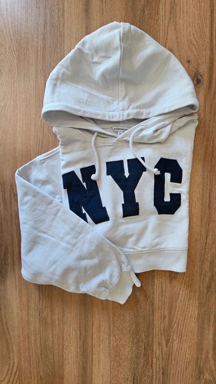 Sweat NYC crop top blanc et bleu marine, Clockhouse