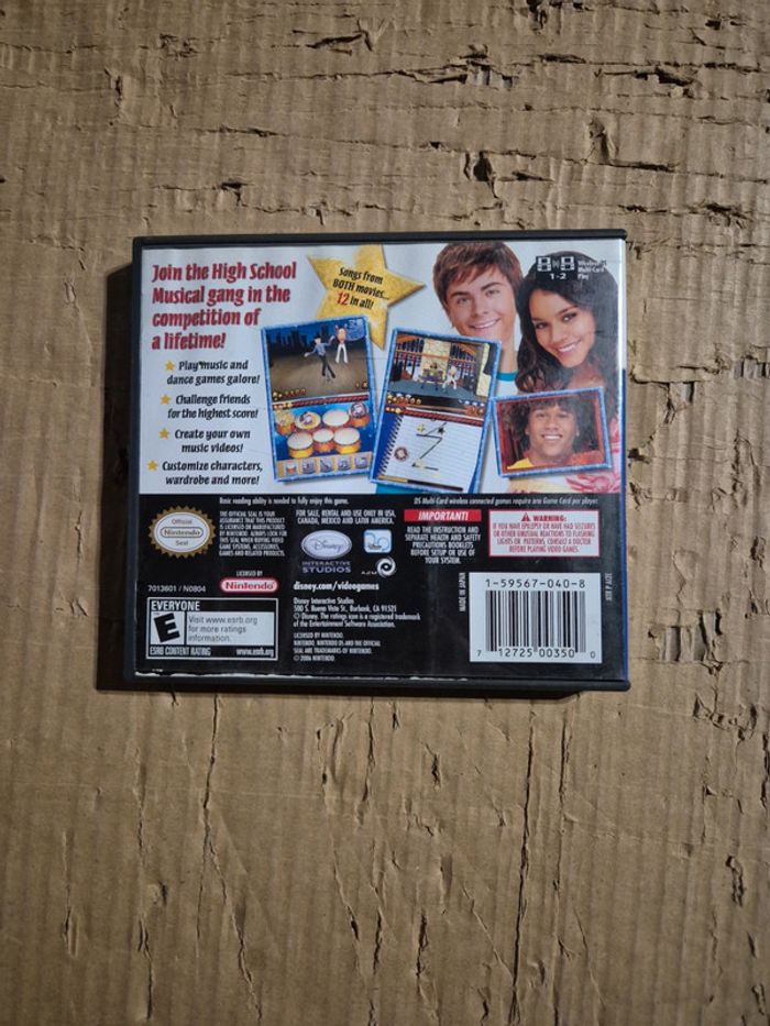 Jeu High School Musical pour Nintendo DS en très bon état. La boîte du jeu est en anglais mais le jeu passe bien également en français. La jaquette est légèrement usée sur l'arrière en bas (voir photo 2). #jvtm59_DS