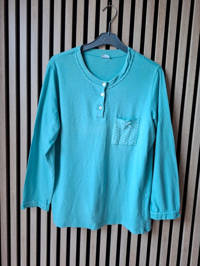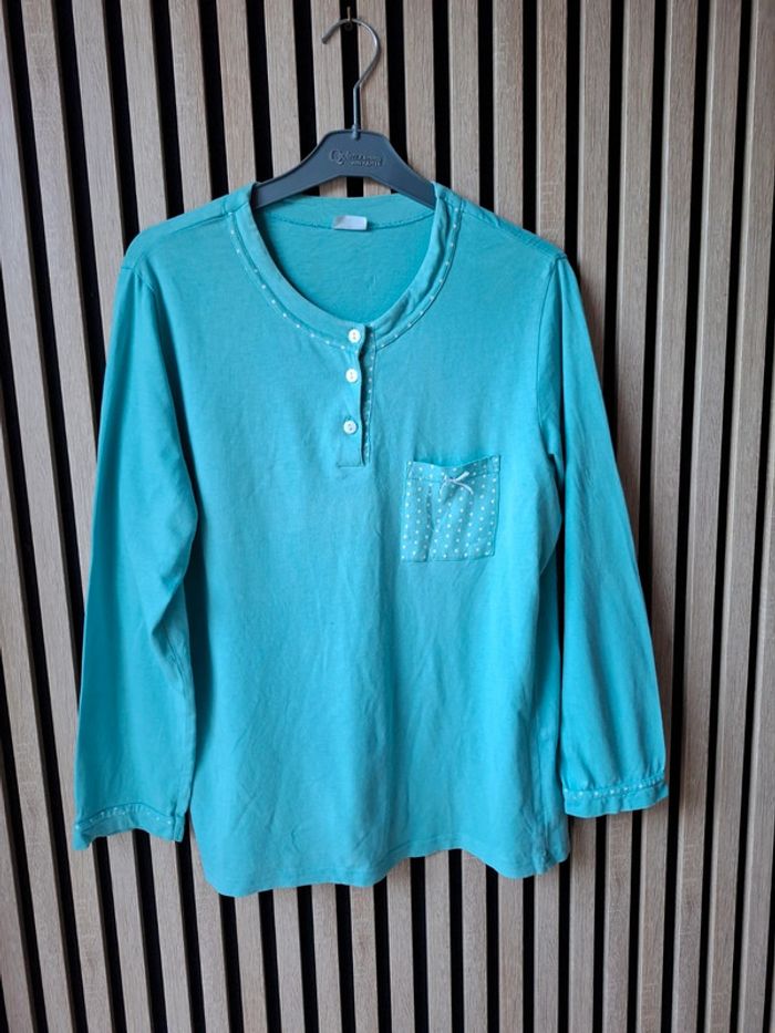 Haut de pyjama en coton turquois T 38 - photo numéro 1