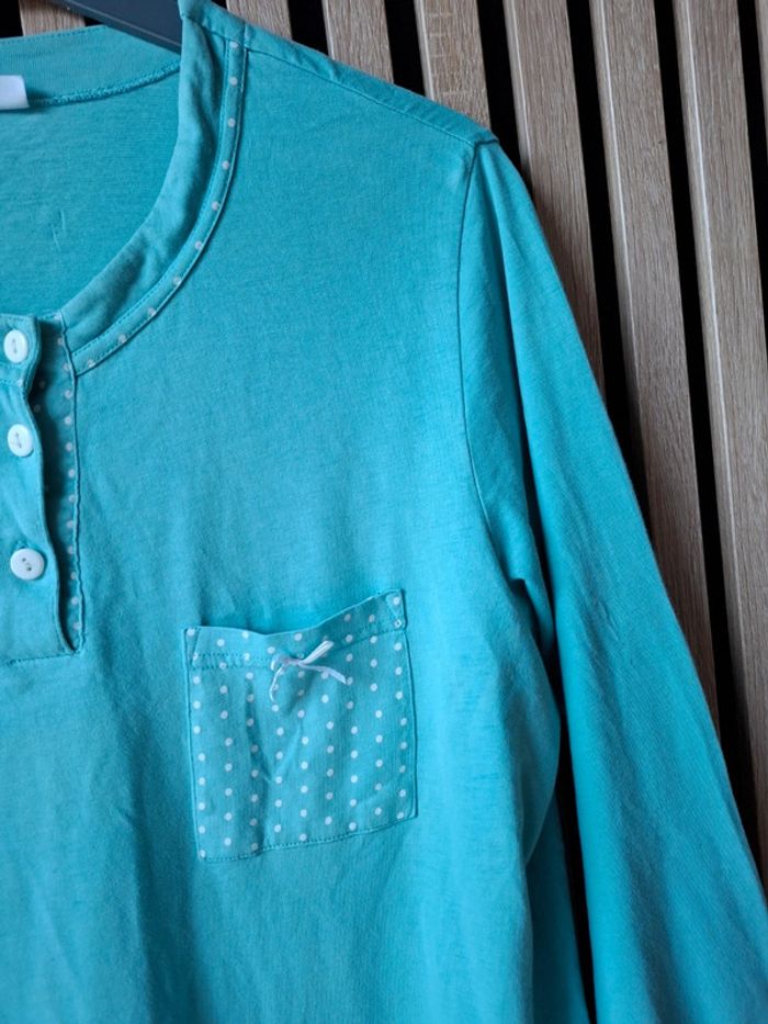 Haut de pyjama en coton turquois T 38 - photo numéro 9
