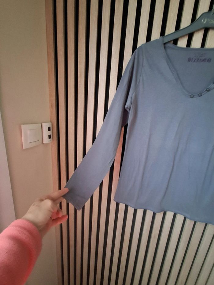 Tee shirt manches longues gris Bizzbee T38 Coton et polyester Petits boutons en étoile 🌟 au décolleté +un de rechange N hésitez pas à visiter mon profil et laissez vous guider par mes différents # #clementine13430femmest38 #bizzbee38