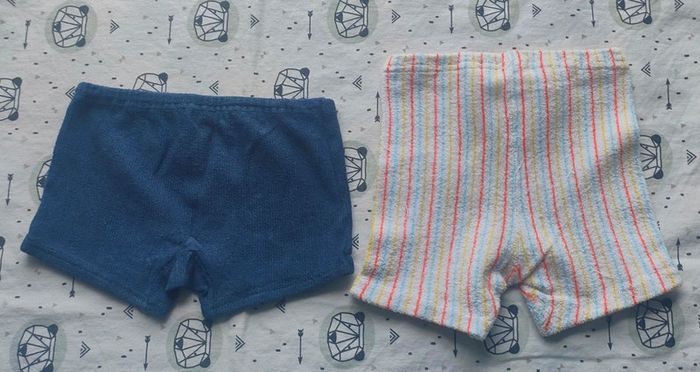 Lot 2 shorts: dont un blanc rayé en très bon état sans marque. L'autre bleu marine en bon état sans marque pour garçon taille 6 mois #neezia33240lotsshortsgarçon6mois
