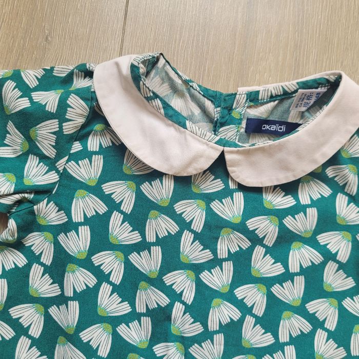 Blouse avec fermeture dans le dos, vert et blanc. Fille 3 ans. Marque Okaidi - photo numéro 1