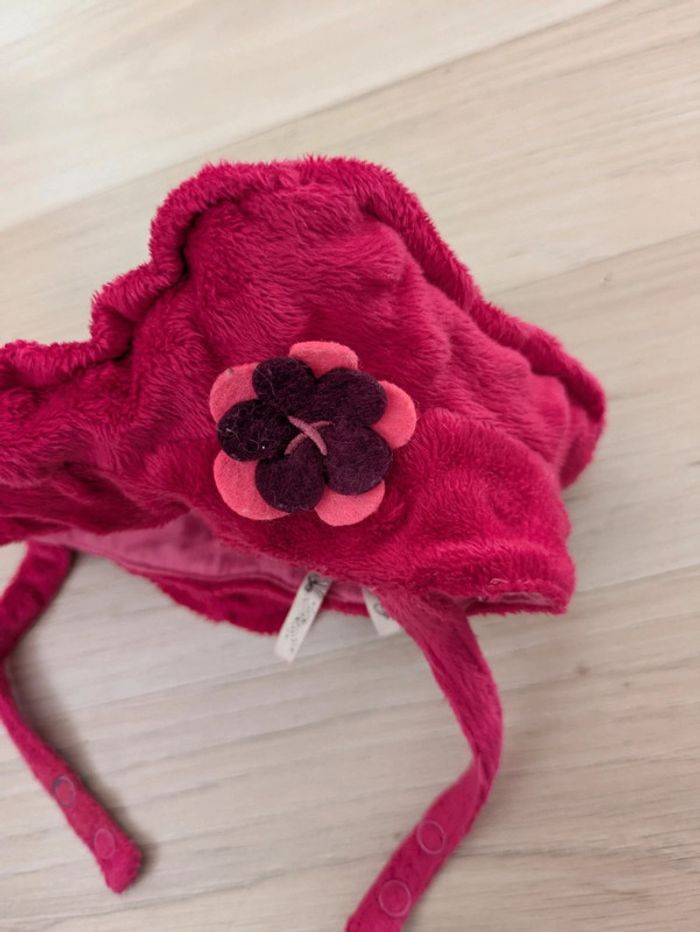 Chapeau hiver fille taille 3-6 mois marque Orchestra baby rose fushia avec petite lanière avec bouton-pression pour qu'il tienne bien et ne s'envole pas. Mes autres annonces du même âge #joeypotter91_filletroismois #joeypotter91_fillesixmois [Carton Helmet]