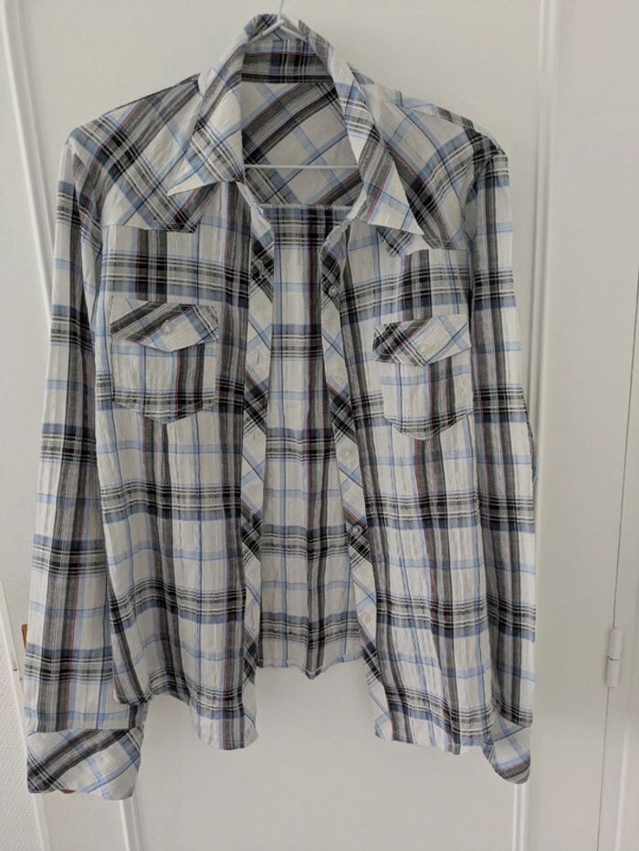 Chemisier chemise femme taille 40 très sympa avec différents coloris et des fils argentés Mes autres annonces de même taille #joeypotter91_femmetaille40 [Carton Tulipe]