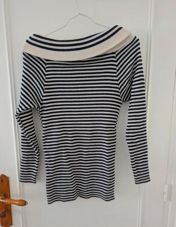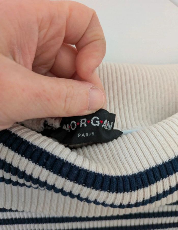 Pull taille S / fille 16 ans marque Morgan avec col qui se replie sur les épaules. Très joli modèle. Mes autres annonces femme et fille de même taille #joeypotter91_femmetaille36 #joeypotter91_filleseizeans [Housse grise]