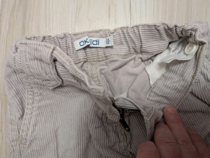 Pantalon velours garçon taille 3 ans marque okaïdi avec bouton fermeture éclair et taille élastique ajustable diverses poches modèle resserré en bas vraiment très sympa Mes autres annonces de même âge #joeypotter91_garçontroisans [Sac kiwi]