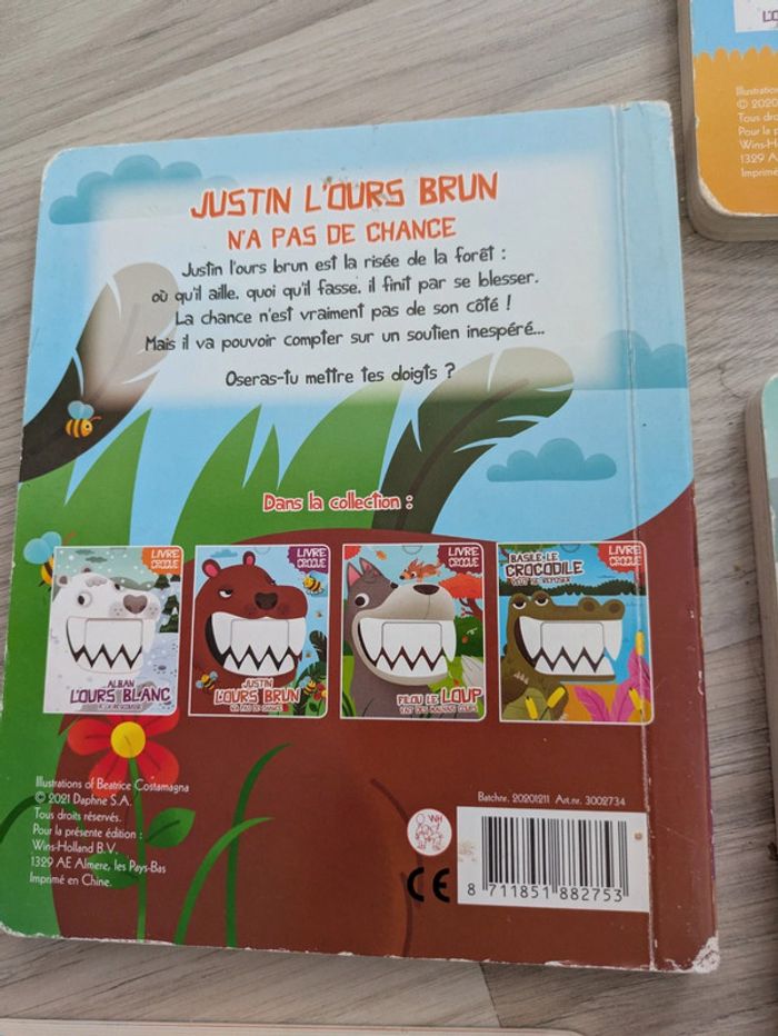 Lot de 6 livres dont trois livres croque : - Justin l'ours brun n'a pas de chance - Basile le crocodile veut se reposer - Alban l'ours blanc à la rescousse Et - En route le tracteur - Le monde secret des emojis - Bambi mon histoire du soir 5€ le lot complet soit moins de 1€ le livre ! Tout petit prix :) Mes autres annonces du même âge #joeypotter91_garçondixhuitmois #joeypotter91_garçondeuxans #joeypotter91_garçontroisans #joeypotter91_garçonquatreans #joeypotter91_garçoncinqans #joeypotter91_filledixhuitmois #joeypotter91_filledeuxans #joeypotter91_filletroisans #joeypotter91_fillequatreans #joeypotter91_fillecinqans