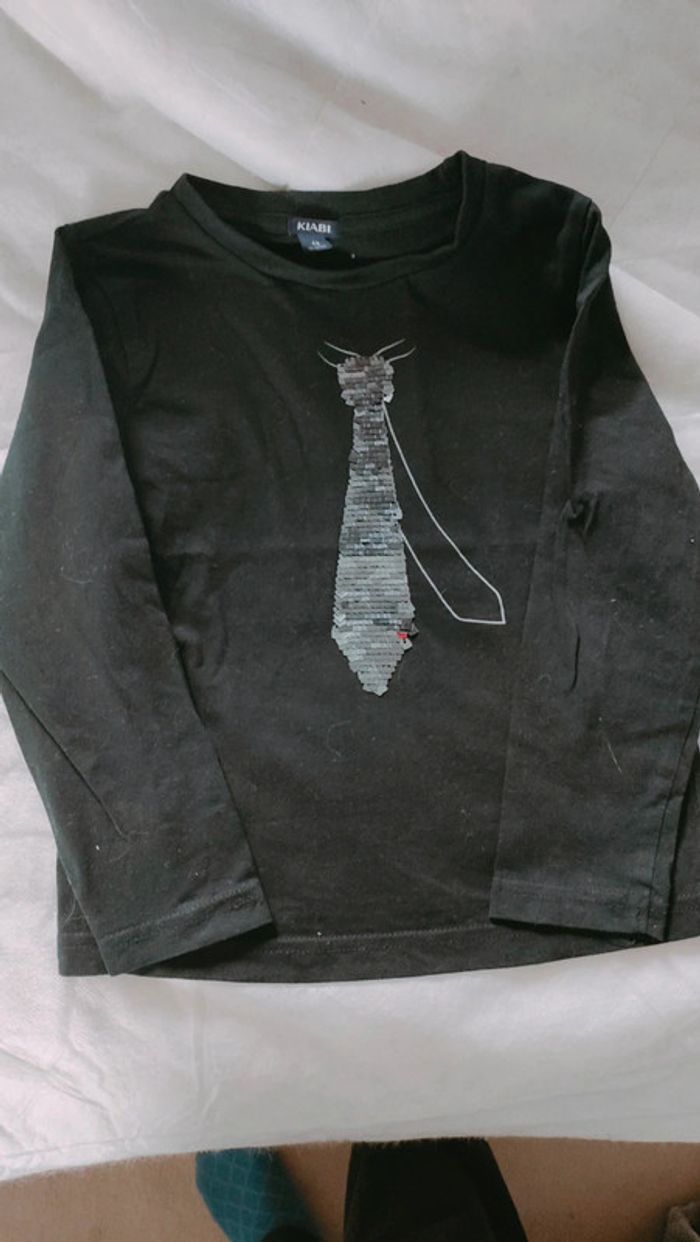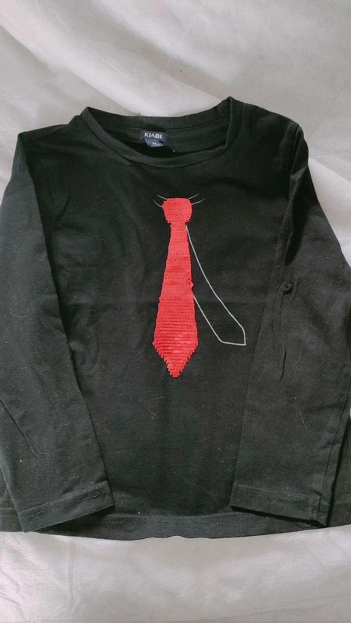 Manches longues. Cravates en perles sequin rouge ou gris. Très bon état. Kiabi 4 ans
