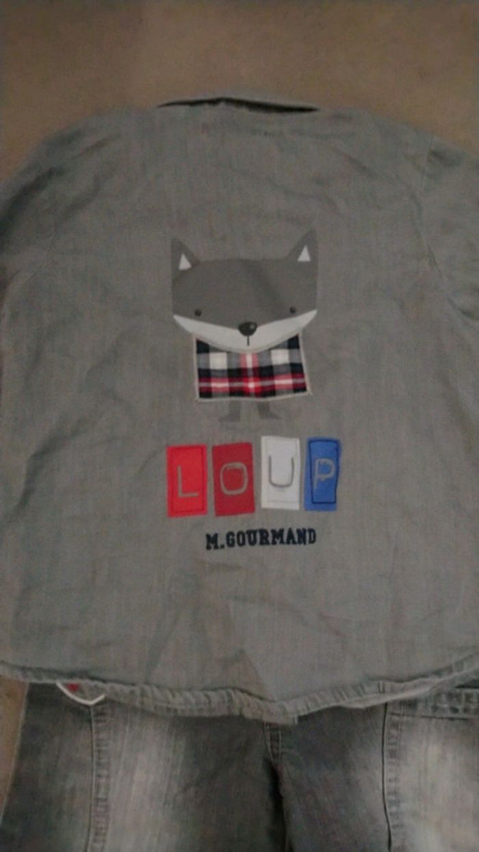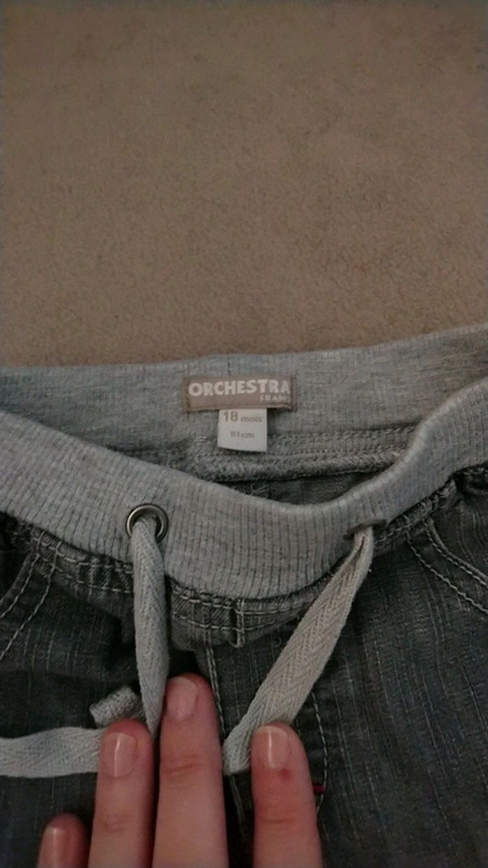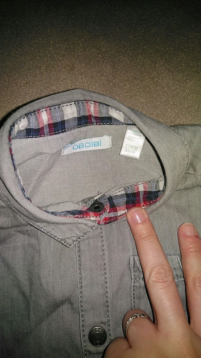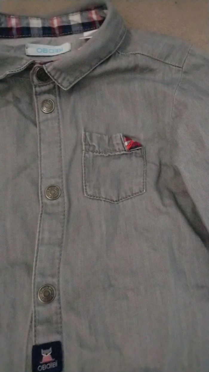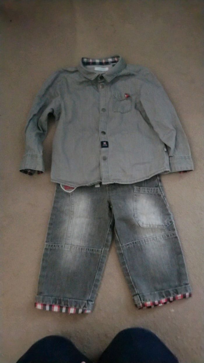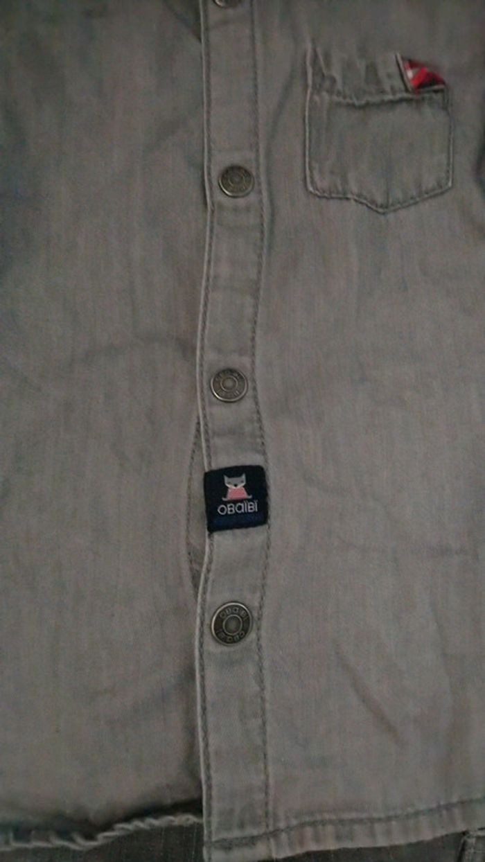 Chemise obaibi 23 mois et pantalon orchestra 18 mois. Le tissu en bas des jambes du pantalon est déchiré