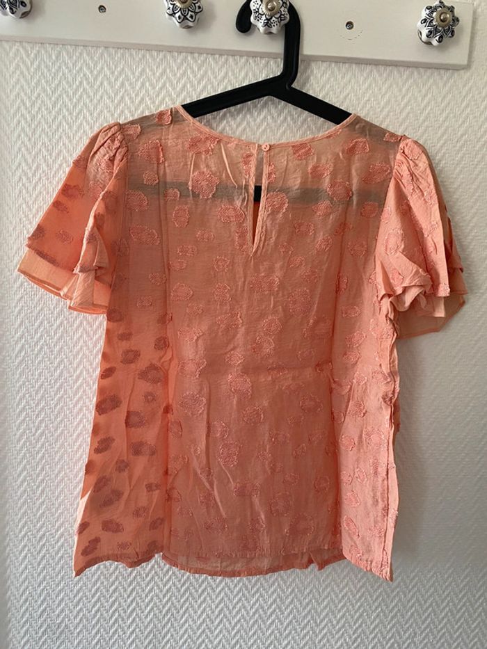 Blouse corail manches bouffantes Camaïeu, taille S, en très bon état.
