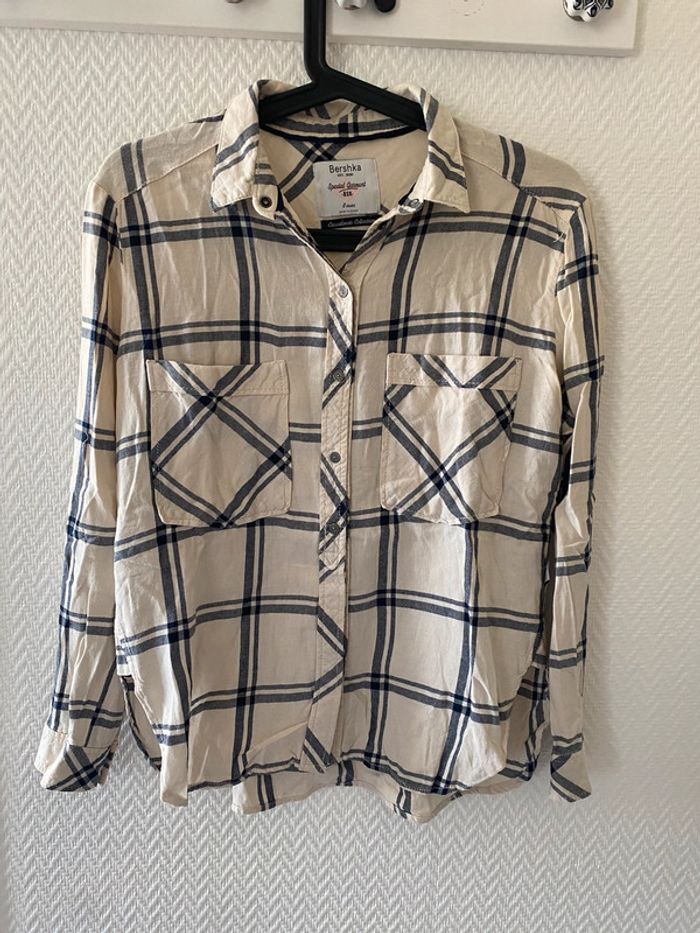Chemise rayé crème et bleu marine Bershka, taille S, en très bon état.