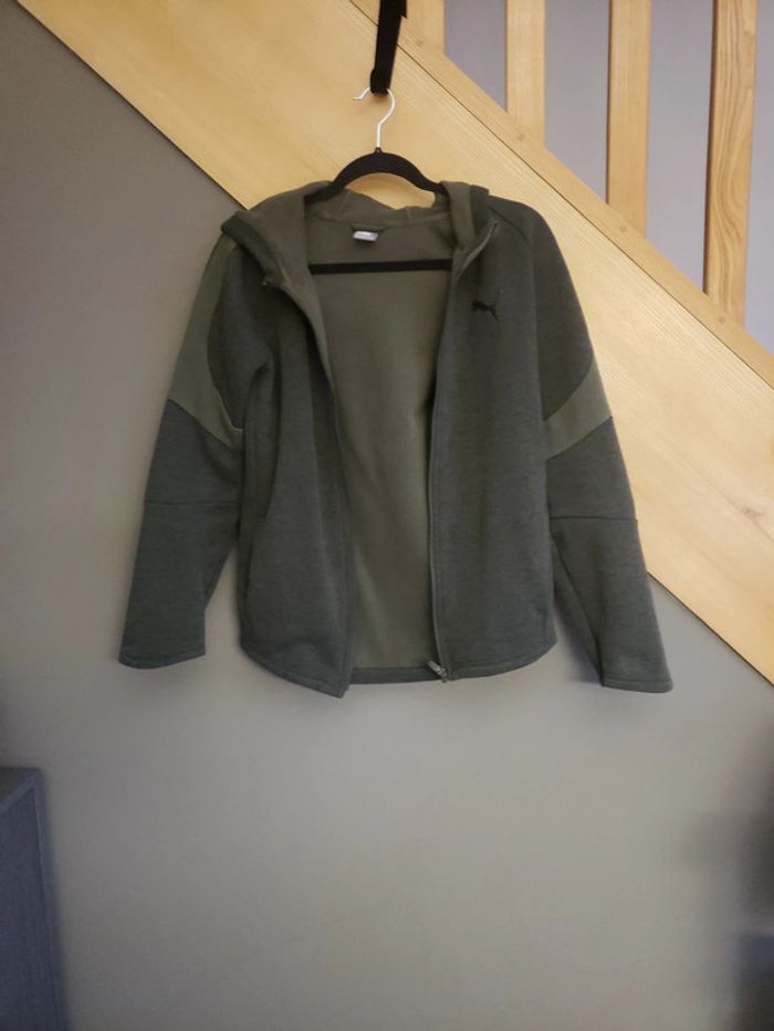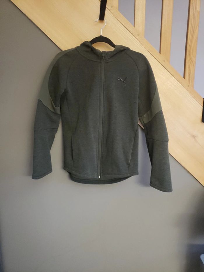 Couleur kaki Logo en relief impeccable Fermeture éclair Deux poches A capuche 13-14 ans