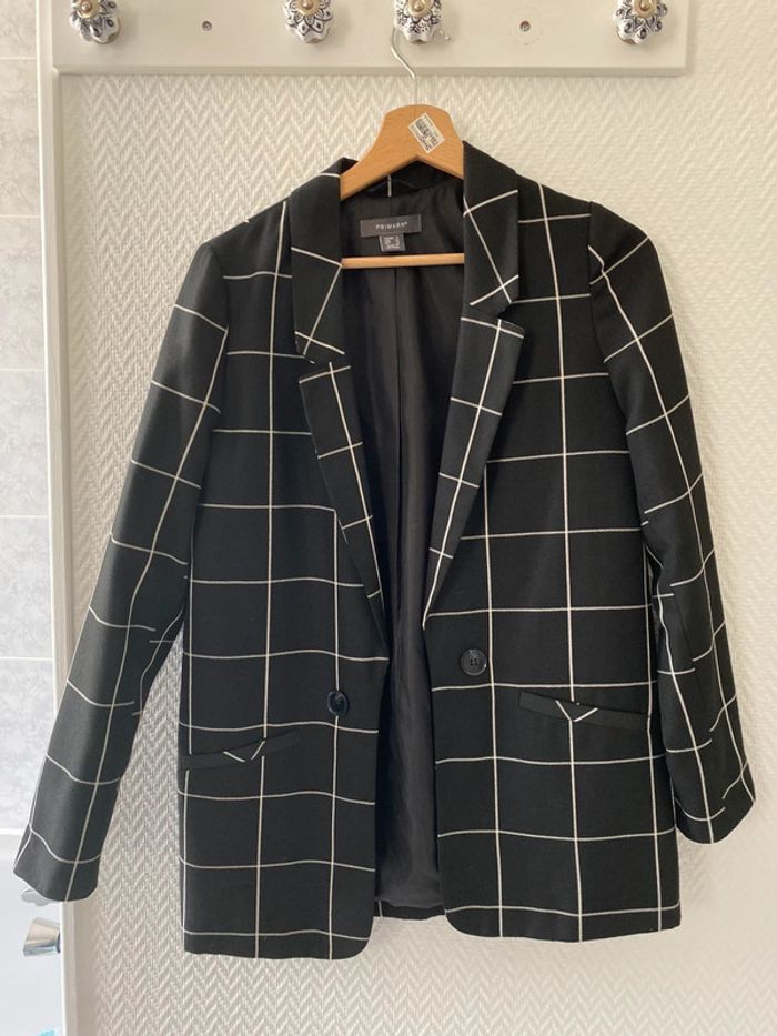 Blazer noir à rayures blanches Primark taille 32, en très bon état.