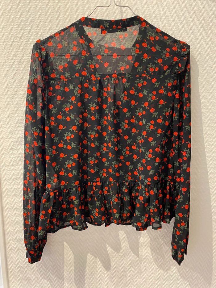 Chemisier Kiabi noir avec des roses rouges, taille XS, en très bon état.