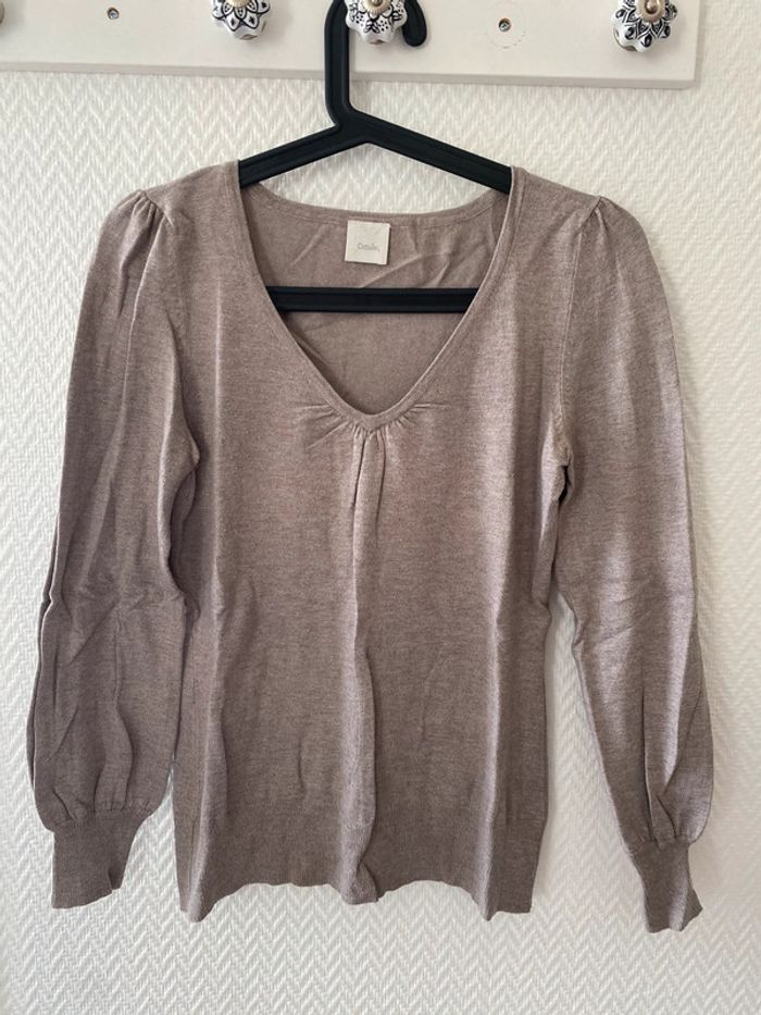 Pull col V Camaïeu beige, taille M, en très bon état.