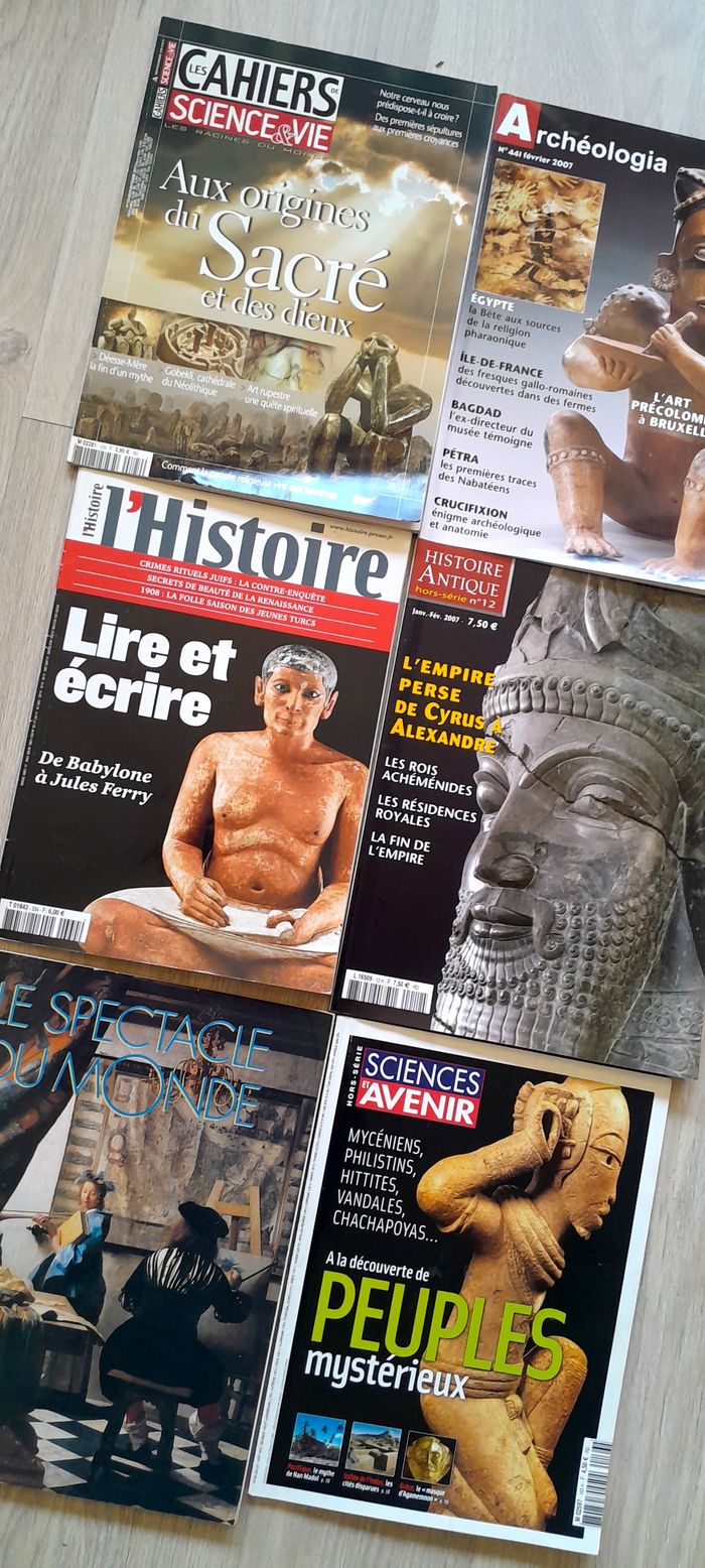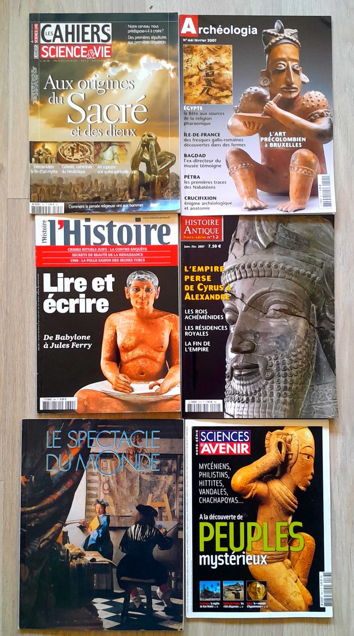 lot indissociable archéologia - 82 pages 28x21cm histoire antique - 81 pages - 28x21cm sciences et avenir à la découverte de peuple mystérieux 82 pages 27x20cm science et vie aux origines du sacré et des dieux 114 pages 28x21cm histoire lire et écrire de babylone à jules férry 95 pages 28x20cm le spectacle du monde 96 pages 28x22cm