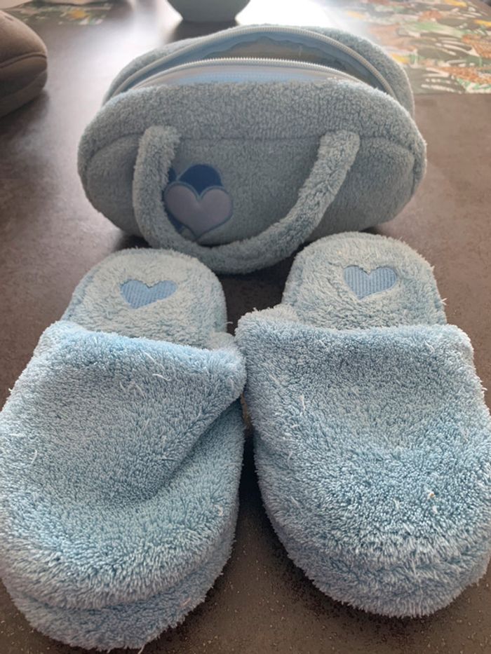 chaussons avec petit sac de transport, pointure 29, trace usure semelle .