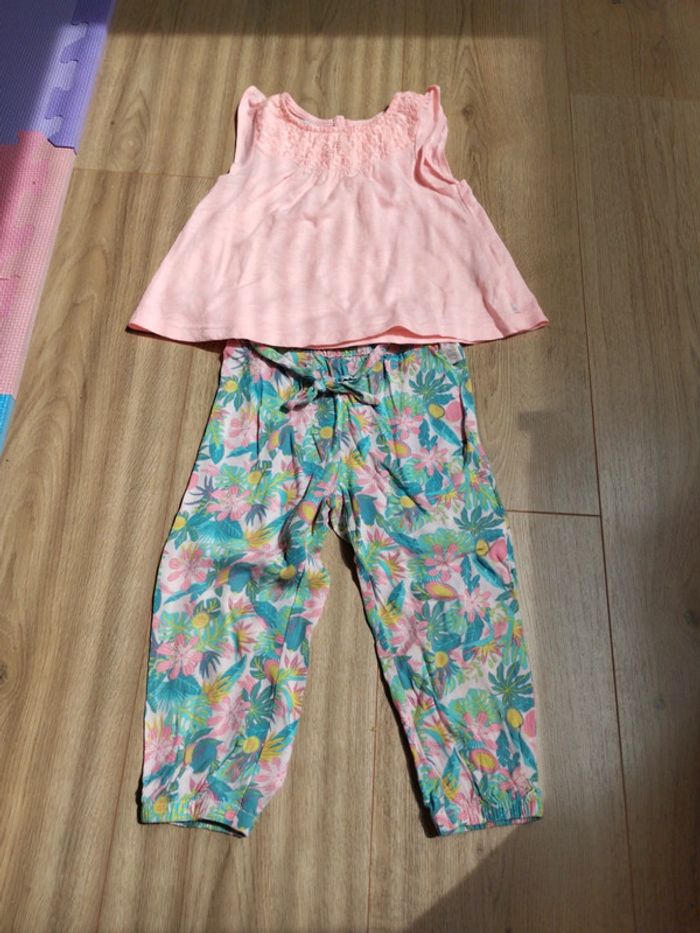 Haut Okaïdi (très légère petite tâche sur le devant) sinon très bon état et pantalon fluide la compagnie des petits comme neuf #fille_24M_home_a