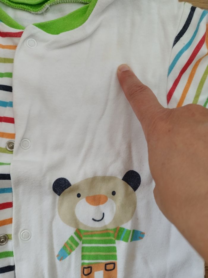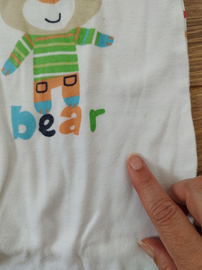Combishort blanc avec un ourson Petites tâches à 2 endroits, mais se voient à peine