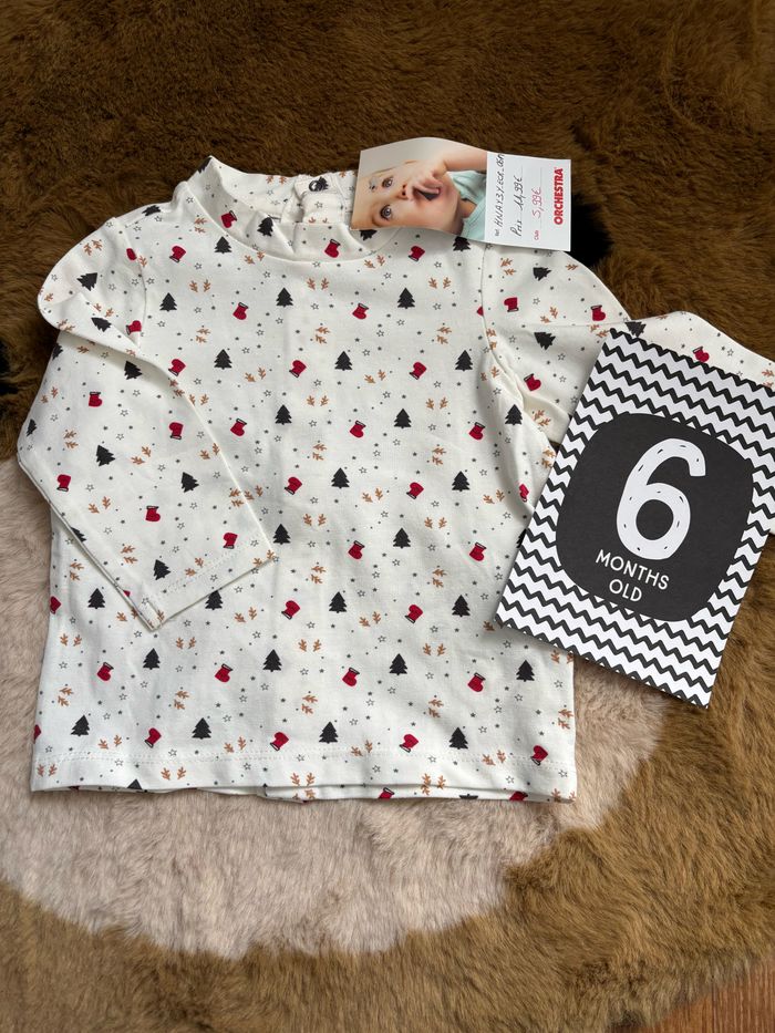 Tee shirt blanc ORCHESTRA taille 6 mois Motif sapins/chaussettes de Noël/etoiles , petit col, pressions à l’arrière NEUF AVEC ÉTIQUETTE #bebegarcon #bebe6mois #automne #hiver Retrouvez tous mes articles bébé garçon : #ixfeelxinsanebebegarcon