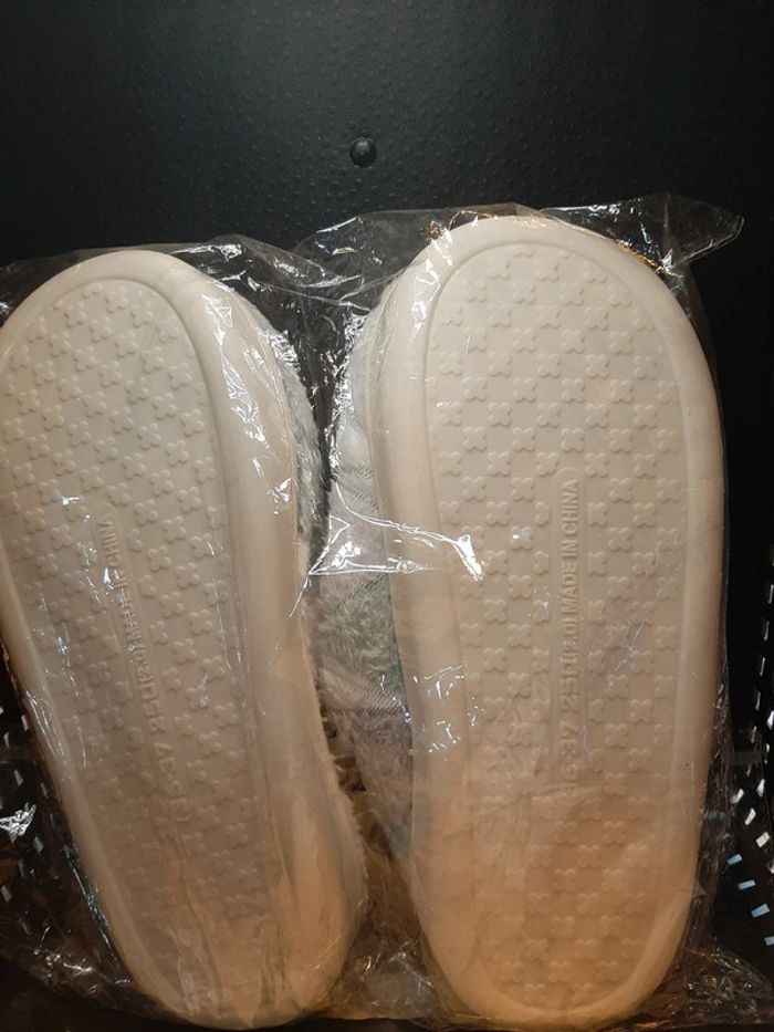 Chausson 36-37. Neuf. Chaud. Couleur vert, blanc gris. 2.50e