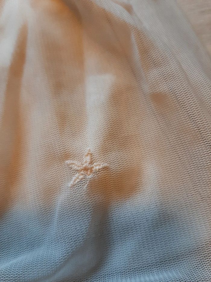 Robe achetée neuf 23.00e Porter 3h00. Problème au bout du 2eme lavage au niveau de quelques étoiles. Voir photo. Sinon elle est nickel et très belle. Couleur beige rose. Marque kiabi. 4.50e