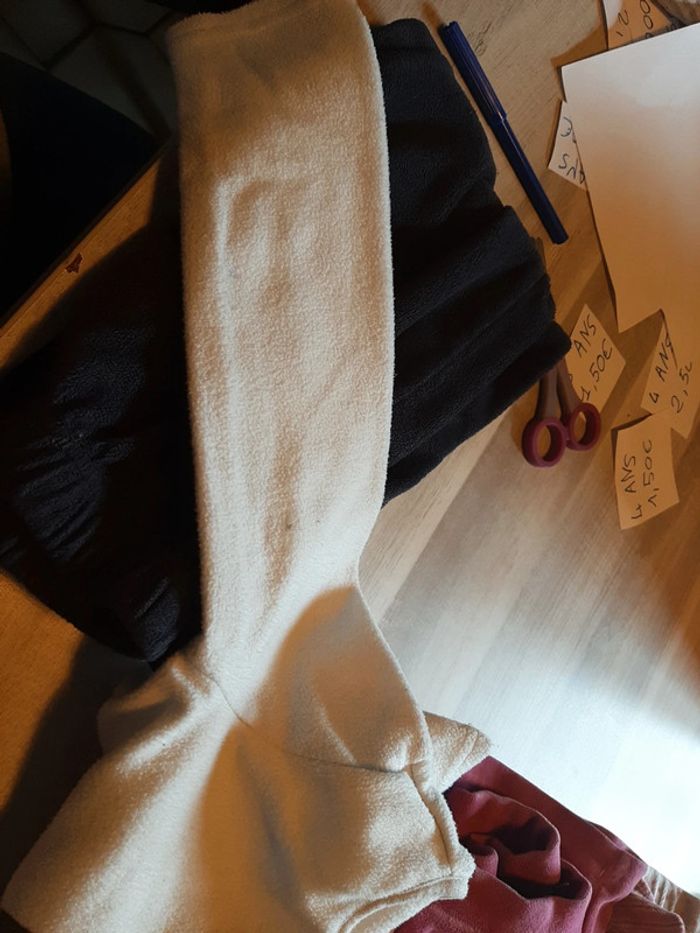 Lot de 3pyjama 4ans. Ils ont était portée mais reste en bon état. Il y a 2 petite tâche sur la manche du haut blanc. 5.50e. Marque kiabi, NKY et tout compte fait