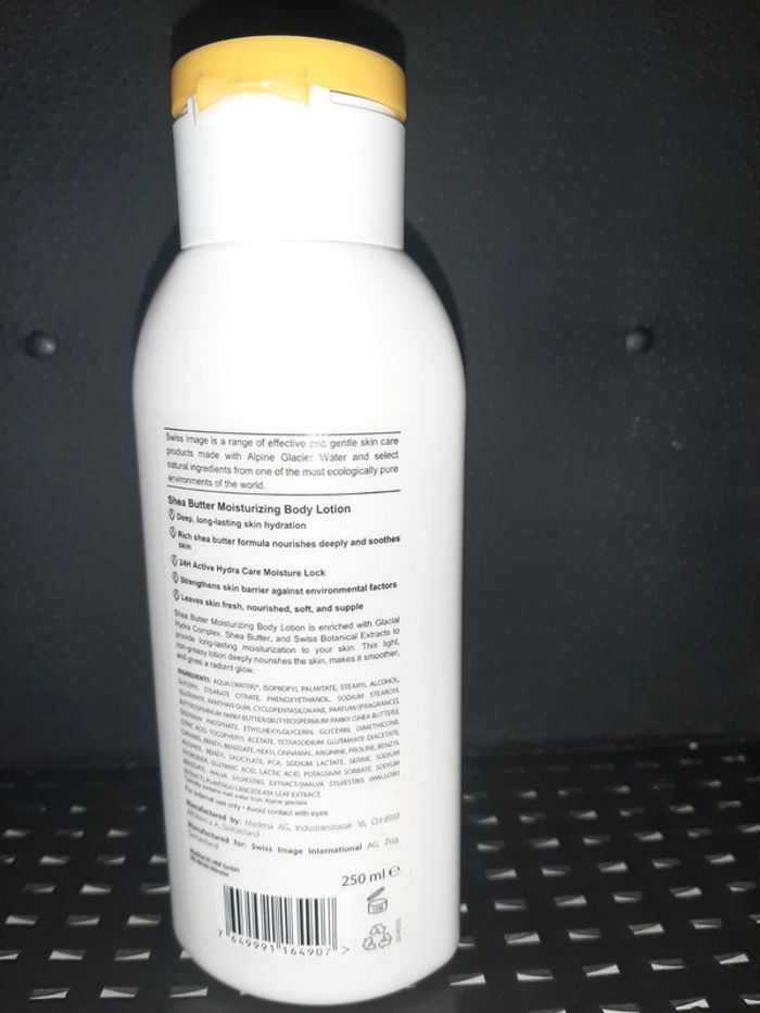 Lait corporel de marque Swiss image. Traduction en photo. 250ml. Neuf. Date: 11/25. 2.50e. Prix initial: 12.10e