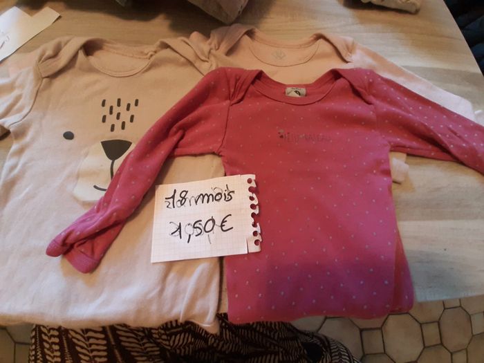 Lot de 3 bodies en 18 mois. État satisfaisant ( tissus un peu usé mais reste correcte ). 1.50e les 3 Marque absorba et tex
