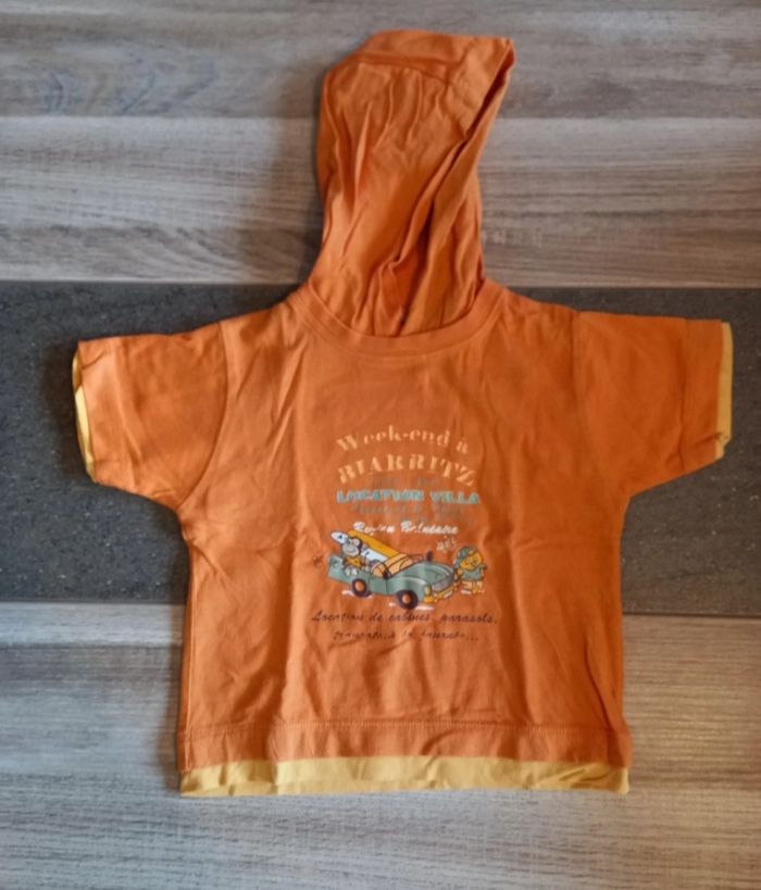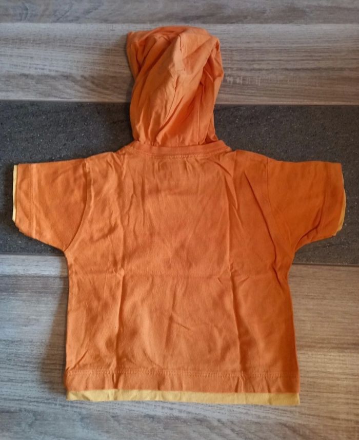 Vends t shirt manches courtes à capuche. Taille 12 mois Bon état