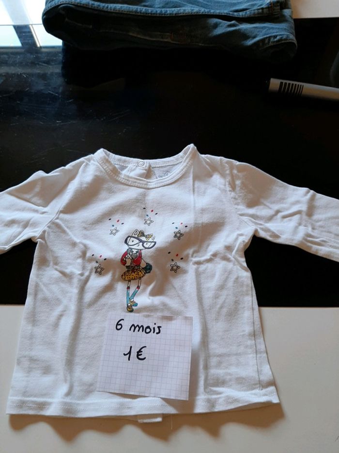 T-shirt Manche longue 6 mois fille. 1e. Pleins d'autres vêtements fille à vendre de 0 à 9mois