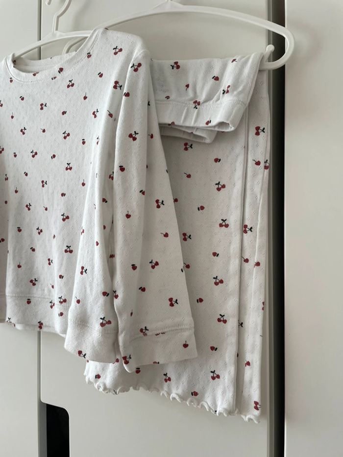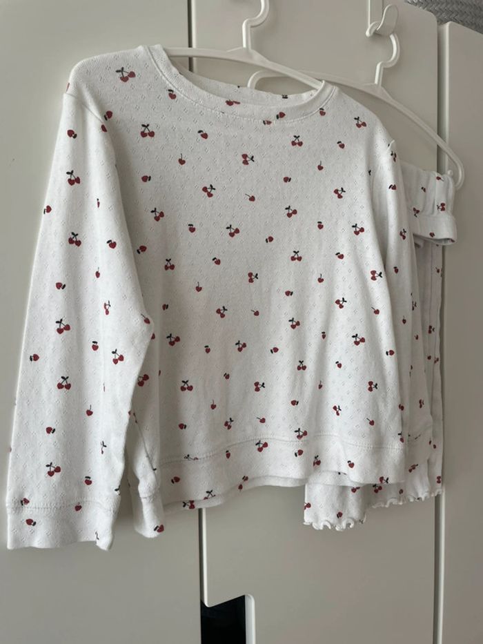 Pyjama avec haut manche longue eg pantalon wide coupe parfaite Blanc impression cerise Matière coton