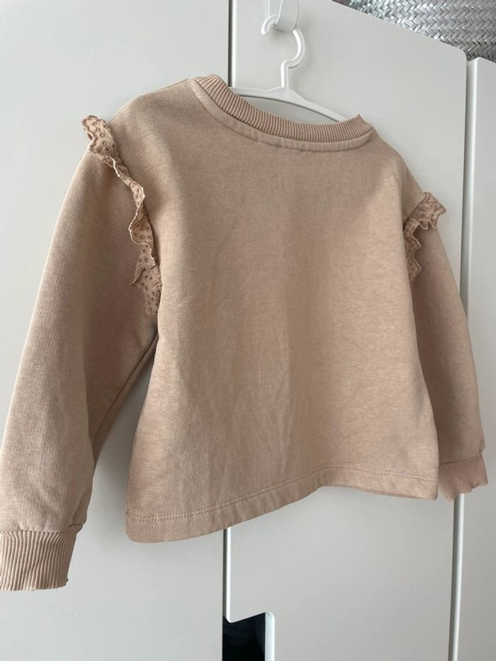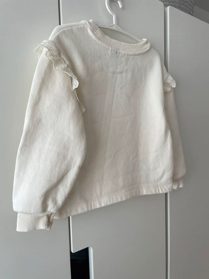 Neuf sans étiquette Lot 2 sweat kiabi 3 ans Blanc et beige détail volant épaule