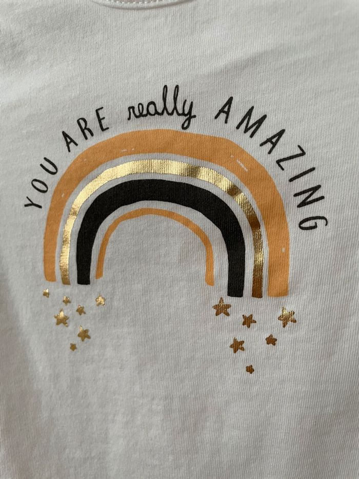 t shirt manche longue neuf tex taille 6 mois impression arc en ciel doré