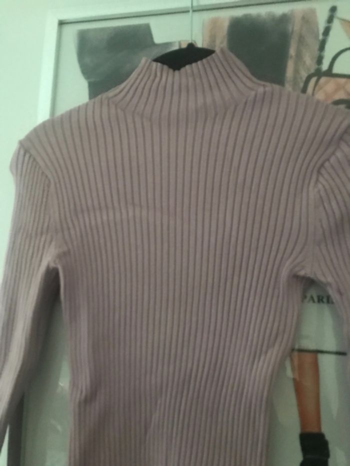Top côtelé col montant lila Zara M - photo numéro 3