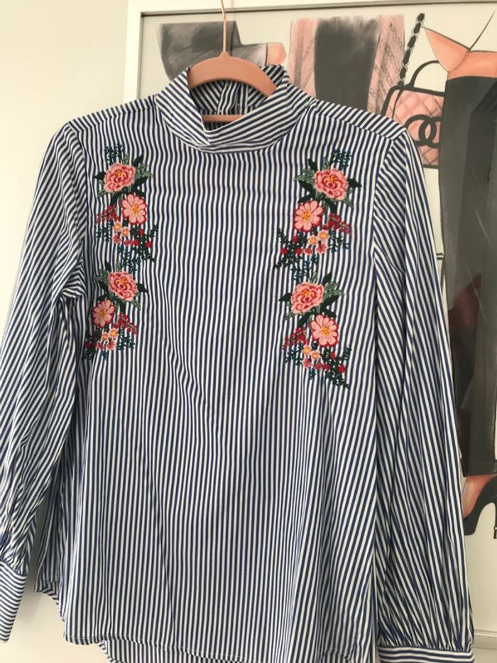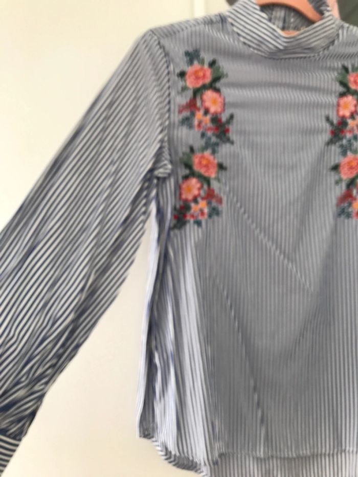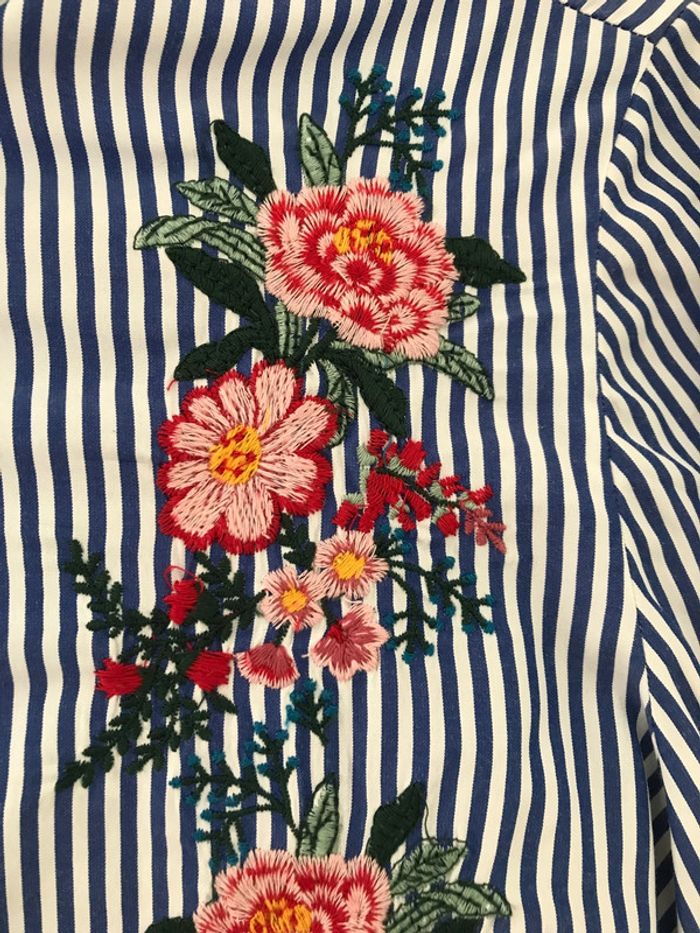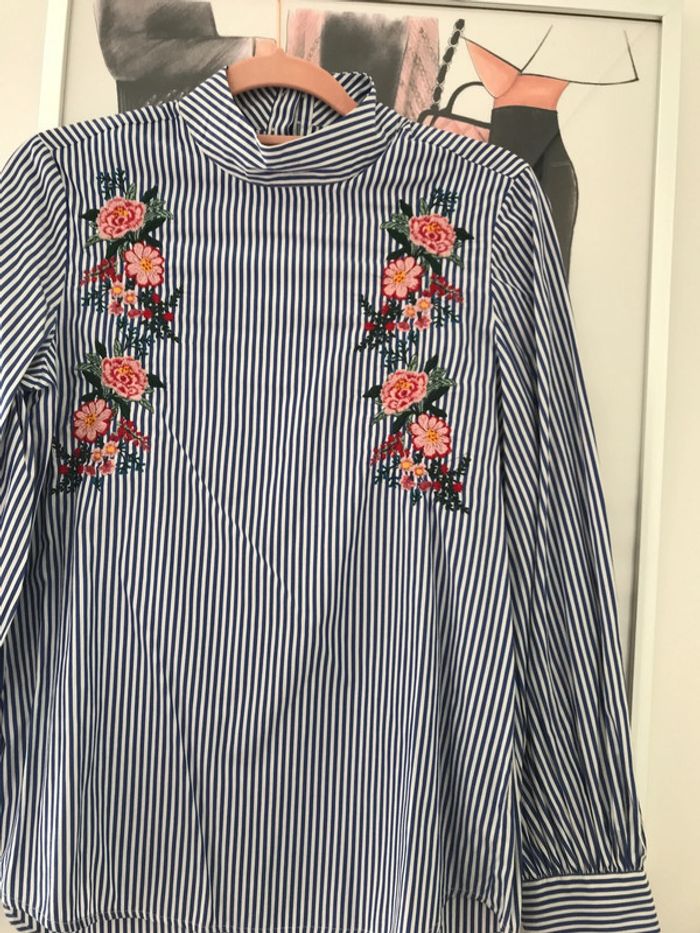 Rayée et brodée fleurs M Col montant