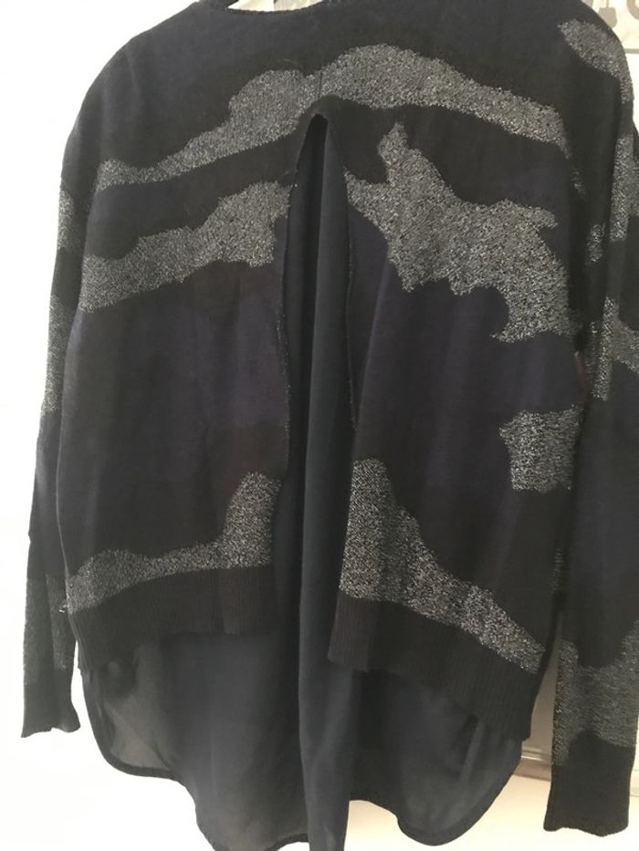 Maille imprimé militaire marine et lurex argent Dos ouvert sur chemise marine