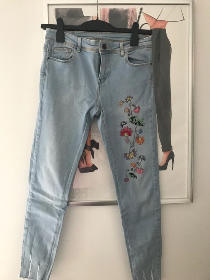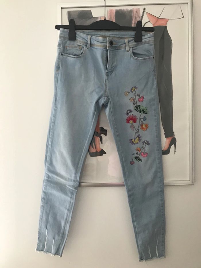 Jean slim Zara broderies fleurs 38 - photo numéro 1
