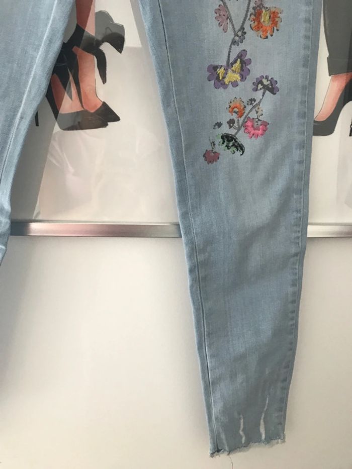 Jean slim Zara broderies fleurs 38 - photo numéro 2