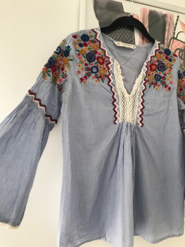 Blouse rayée broderies fleurs S Zara - photo numéro 3